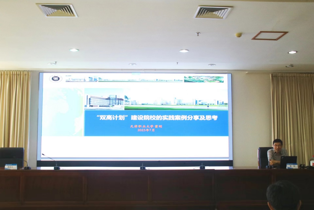 7月18日下午,全国职业教育著名专家、“双高计划”建设咨询委员会委员、国家督学、全国职业高等院校校长联席会主席、天津职业大学原校长、二级教授董刚到我校作专题报告,全体校领导、中层干部及各基层党支部书记、教研室主任、专业带头人共同聆听了报告会。报告会由校党委副书记魏晓东主持。