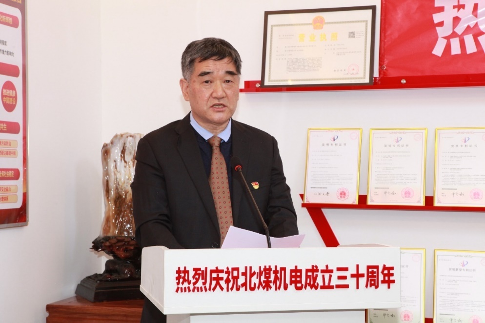 高喜军书记代表开云网党委对北煤机电成立三十周年表示热烈祝贺!他在充分肯定公司取得成绩的同时,还希望公司在今后在传统领域中继续保持优势地位,要充分利用煤炭、石油在今后相当长一段时期内作为主要能源的特殊地位,进一步研发新产品,进一步提升产业服务。对于公司未来发展他强调,希望要紧密结合新时代首都和开云网发展,利用城教融合契机,开辟新的市场领域,时刻关注市场、国家及首都的发展需求,及时提供相应产品开拓新市场。最后,他祝福北煤机电未来会发展得更好,并提前祝大家春节快乐、阖家幸福!