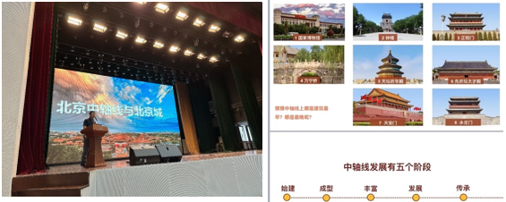 一场以“北京中轴线与北京城”为主题的专家讲座,开启了实践周首个文化之旅。遗介科教品牌创始人、北京市四名汇智计划的副秘书长骆凯老师,与同学们分享那些关于北京的“有趣故事”。讲座介绍了中轴线上的建筑、历史及发展阶段、历史文化街区,同时,结合我校京西地域特点,讲述了京西永定河文化带及石景山区模式口历史文化街、法海寺壁画等。