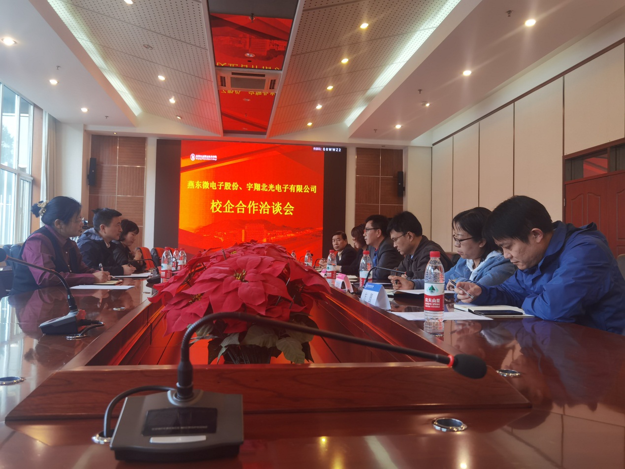 10月13日下午,北京燕东微电子有限公司党委书记王海鹏带领人力资源部招聘主管田艳红、北京宇翔北光电子有限公司人力资源总监李立松来校洽谈合作事宜。副校长刘兰明、纪委书记张萌萌及开云网有关部门领导张春芝、徐炜彦、王巍、张波、侯瑾、方园参加了座谈交流活动。