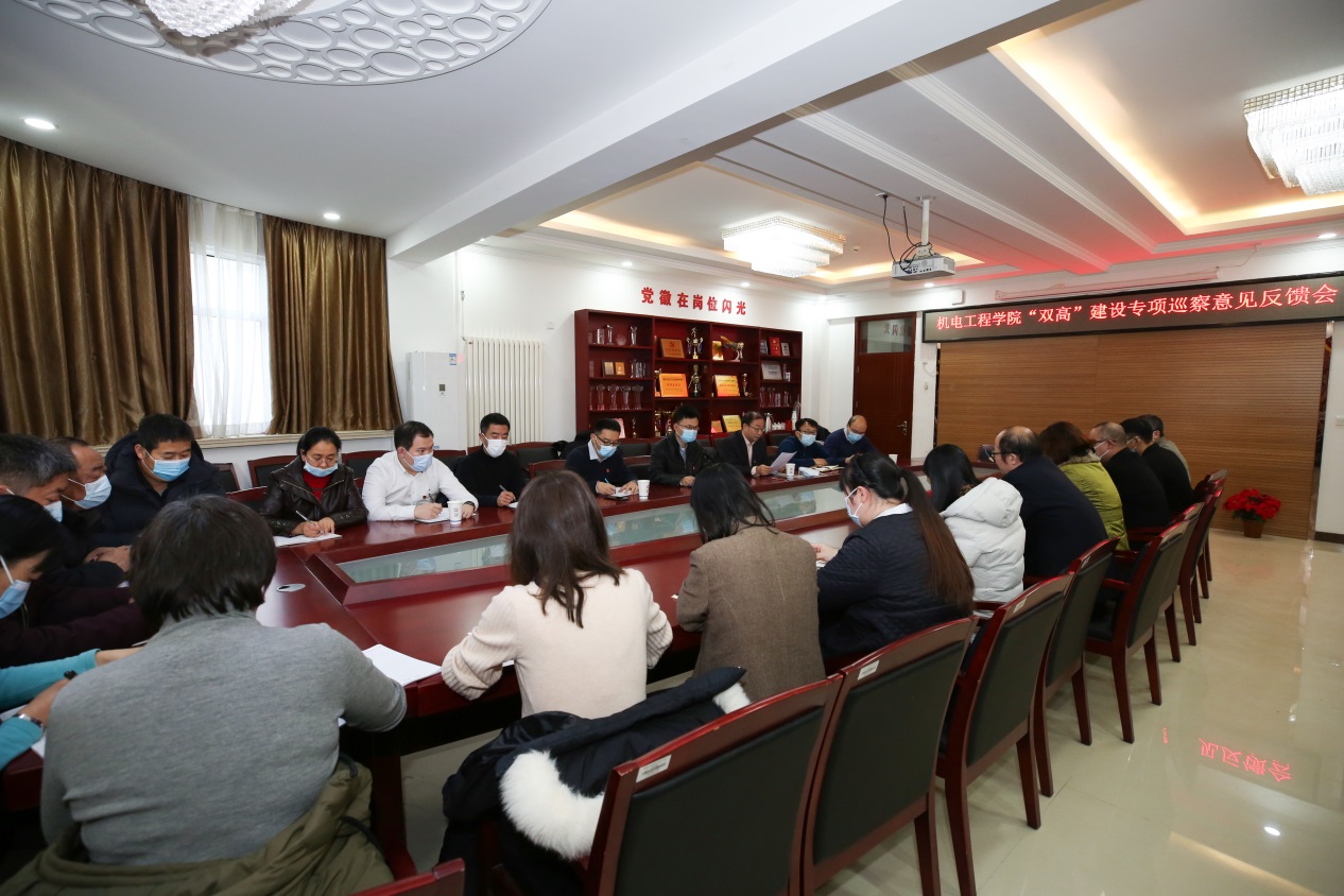 根据开云网党委“双高”建设专项巡察工作安排,1月6日上午,“双高”建设专项巡察组向机电工程学院反馈巡察情况。纪委书记张萌萌出席会议,党委巡察办主任白旭东、巡察组组长牛小铁及全体成员、机电工程学院班子成员及部分教职工参加反馈会。会议由机电工程学院党总支书记王怀群主持。