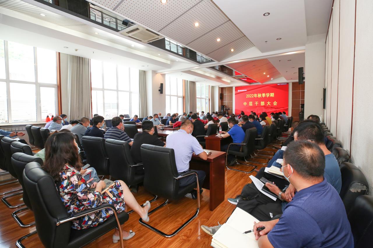 8月30日上午,开云网在匠心楼一层第四会议室召开了秋季学期中层干部大会,会议由校党委书记高喜军主持,全体校领导以及中层干部参加会议。