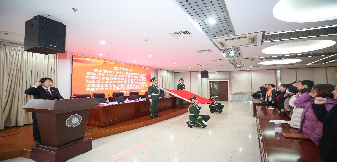 12月4日下午,我校“国家宪法日暨宪法宣传周系列活动启动仪式”在匠心楼三层报告厅举行。我校党委常委、副院长沈莹,党委常委、宣传部部长唐正清、学生工作处处长梁文学、文法与管理学院党总支书记刘建新、院长许保国、党总支副书记林忠华、副院长黄玉芬出席启动仪式。法学专业教师、各班学生代表等师生代表300余人到会。我校法治副校长、北京市石景山区人民法院刑事审判庭副庭长、少年法庭负责人杨洁受邀参加了此次会议。启动仪式由文法与管理学院黄玉芬副院长主持。