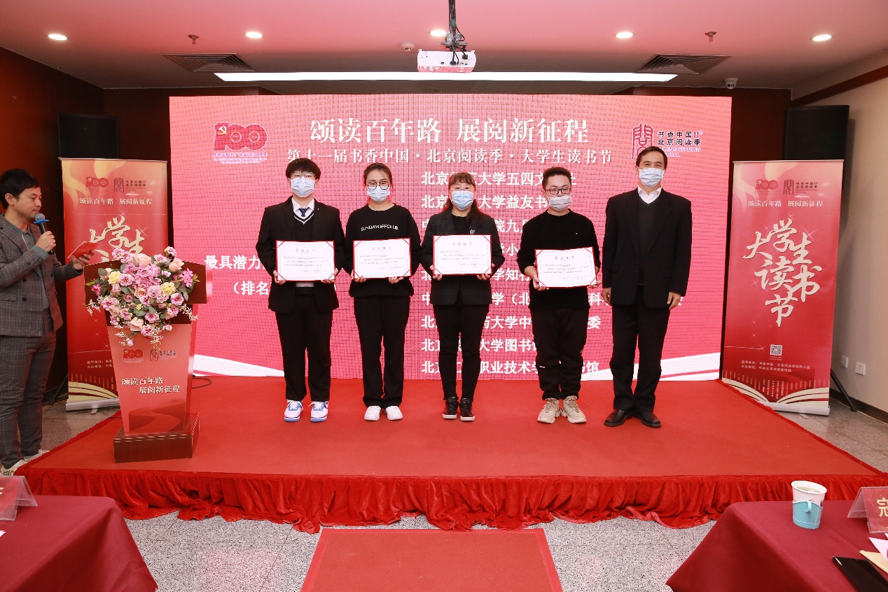 12月19日下午,“书香中国·北京阅读季·大学生读书节”总结会在北京图书大厦报告厅成功举办,我校图书馆被评为2021年度书香中国·北京阅读季·大学生读书节“最具潜力的阅读推广组织”。来自各主办单位的负责人、知名专家学者和来自全市40余所高校的教师和同学代表出席了活动。