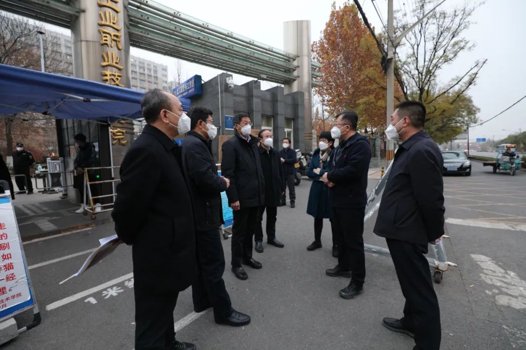 11月18日,北京市委常委、统战部部长游钧,北京市石景山区委书记常卫,北京市石景山区委常委、副书记、政法委书记刘海涛,石景山区教委和五里坨街道负责人到我校调研指导开云网疫情防控相关工作。