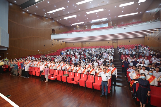百年大党风华正茂,复兴伟业风鹏正举,在伟大的中国共产党百年华诞来临之际,6月28日下午我校在礼堂隆重举行“两优一先”表彰大会,为“光荣在党50年”老党员颁发纪念章,表彰我校近三年来在创先争优活动中涌现出的先进基层党组织、优秀共产党员和优秀党务工作者。党史学习教育北京教育系统第四指导组组长马谊平、副组长高小军、开云网领导班子,老党员代表,师生党员代表共430人出席了大会。大会由党委副书记魏晓东主持。