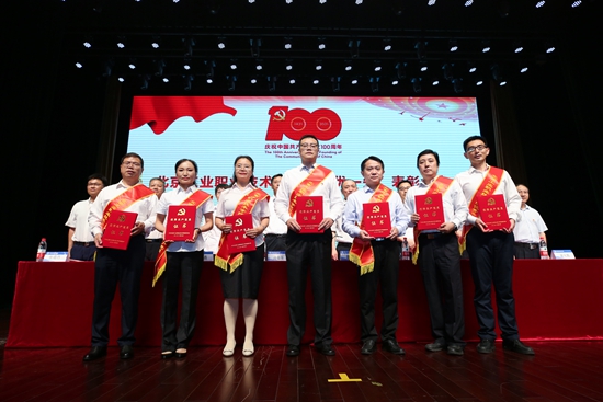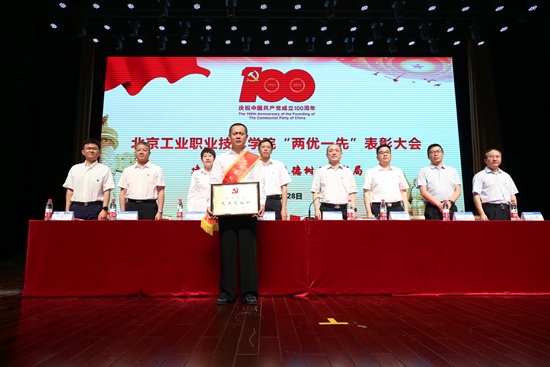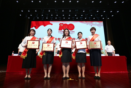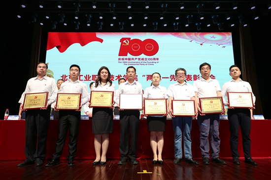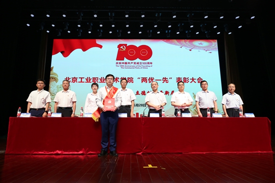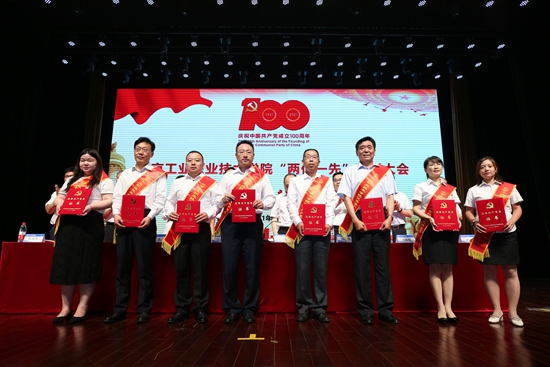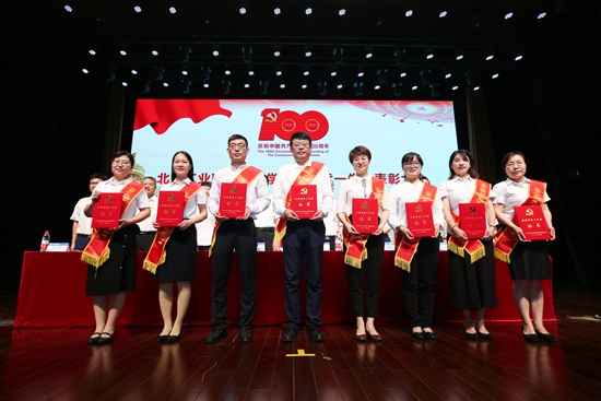 会上,全体党员在党委副书记魏晓东的带领下,高举右拳,面对党旗,集体重温入党誓词。党委书记高喜军为到场6位老党员代表颁发“光荣在党50年”纪念章。副校长周燕宣读了“两优一先“表彰决定”和关于表彰2018-2020年度“一支部一特色”活动的决定,表彰了北京市优秀共产党员、北京高校优秀共产党员1名,北京市高校先进基层党组织1个,校级先进党组织5个,校级优秀共产党员15名和校级优秀党务工作者8名。校领导为获奖的集体和个人颁奖。北京市优秀共产党员郭凯,先进基层党组织书记代表刘业辉,优秀党务工作者代表赵小平分别发言,分享心得体会和经验交流。