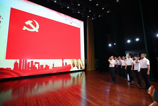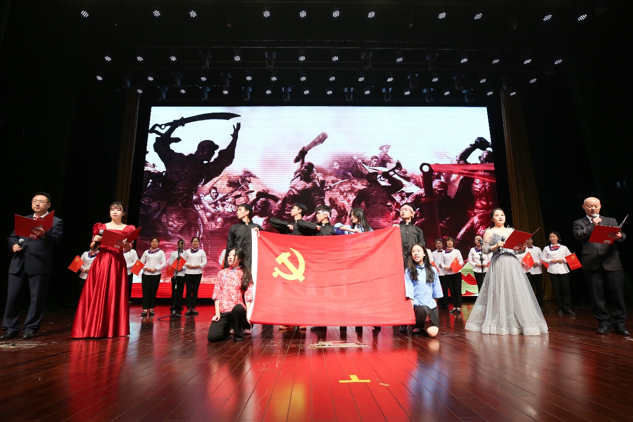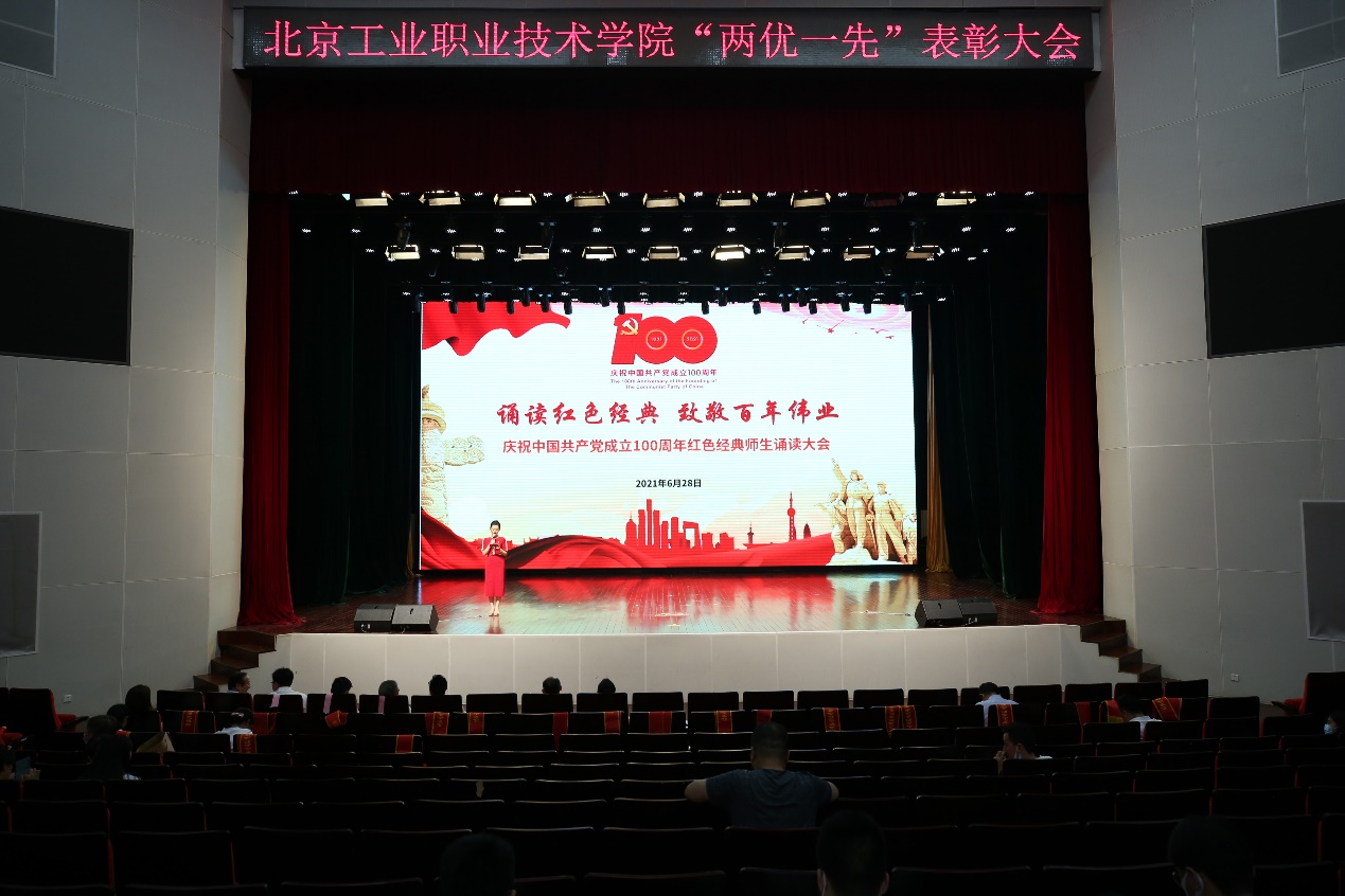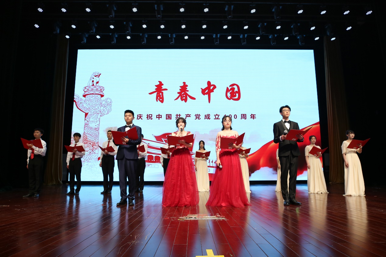 表彰大会结束后,“诵读红色经典 致敬百年伟业——庆祝中国共产党成立100周年红色经典师生诵读大会”正式开始。5个党总支(直属党支部)依次走上舞台,诵读红色经典诗文名篇,回顾党的光辉历程,讴歌党的丰功伟绩。