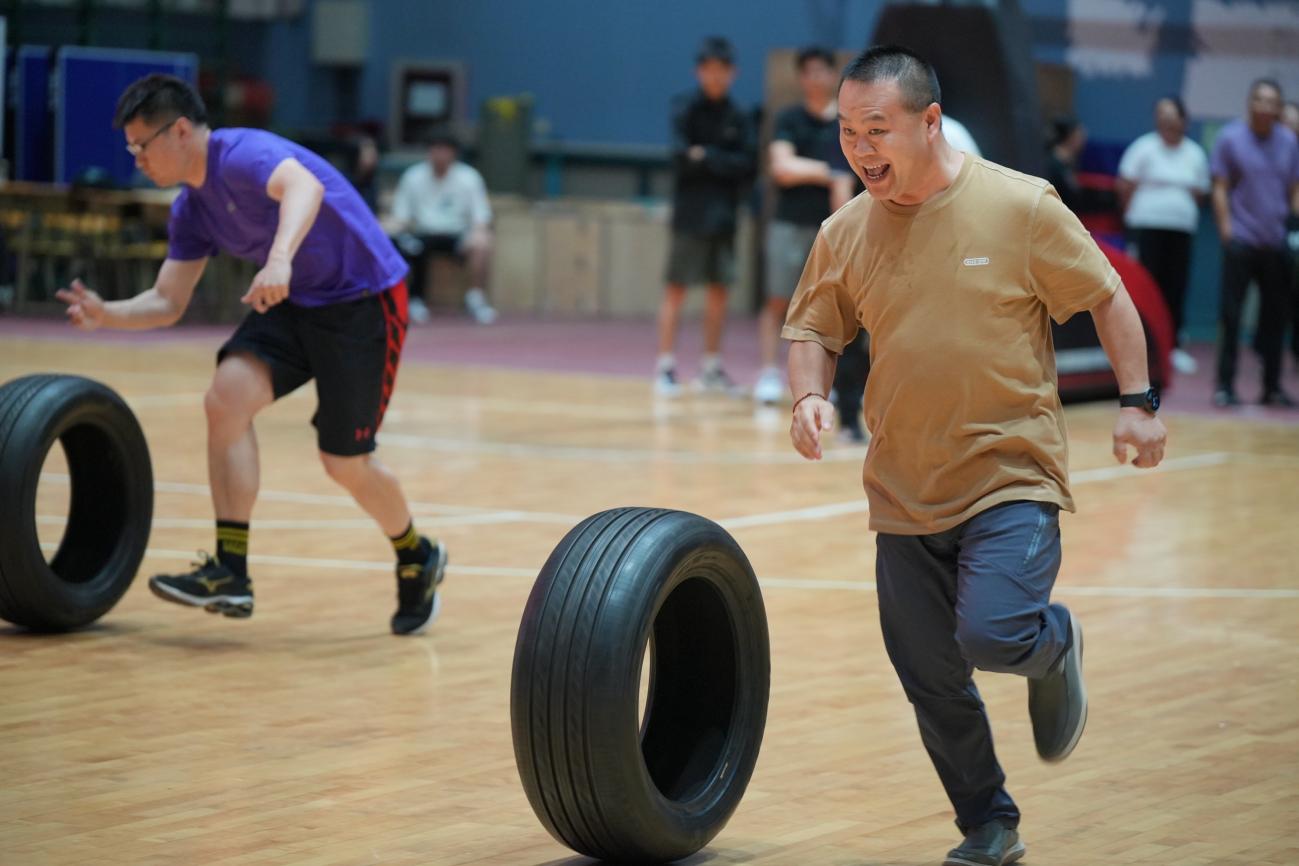 集体趣味项目包括跳长龙、动感颠球、滚轮胎接力以及4*100米接力;团队竞赛中,他们相互鼓励,配合默契,奋勇争先。场上呐喊声此起彼伏,欢声笑语不断,将本次教职工运动会的氛围推向了高潮!