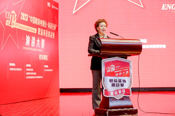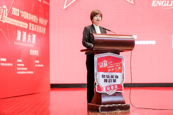 张舍茹教授在致辞中指出,职业教育同仁应与时俱进,立足国际坐标,服务国家战略,培养高素质、具备跨文化交流能力的人才,聚焦提升青年学子的语言技能、职业精神、人文素养、责任担当,在新征程中体现新担当,展现新作为,并鼓励青年学子做好中国故事的亲历者和讲述者,用智慧和热情将中国故事讲出国际范和时代感,在外研社和中国教育电视台为大家搭建的平台上尽展风采、赛出水平。李淑静社长在致辞中提到,在我国与“一带一路”沿线国家的交流往来日益密切、经济文化活动开展频繁、对外语人才的需求更为紧迫的背景下,“中国教育电视台·外研社杯”职场英语挑战赛以赛为端,全面落实“岗课赛证”综合育人要求,旨在选拔高素质、具备跨文化交际能力的技术技能人才,铺设好“语言互通”这一道路和桥梁。
