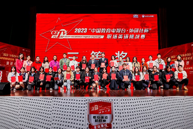 闭幕式上,外籍专家Peter对本次比赛赛况进行点评。他认为,中国迫切需要更多能够站在世界舞台发出中国之声的青年学子,“中国教育电视台·外研社杯”职场英语挑战赛演讲大赛为学生搭建了展示自我的舞台,助力更多学子提升英语表达,提高思辨能力。他赞许了参与本次大赛选手的勇气和热忱,感谢对选手做出细致指导的教师。随后,评委孙川公布了本次大赛获奖名单。我校公共英语教研室的高远老师指导无人机2071班张子文获得二等奖,吴梦瑶老师指导的工程造价2071班王跃树以及高莉老师指导的电子商务2231班任双梅获得三等奖。