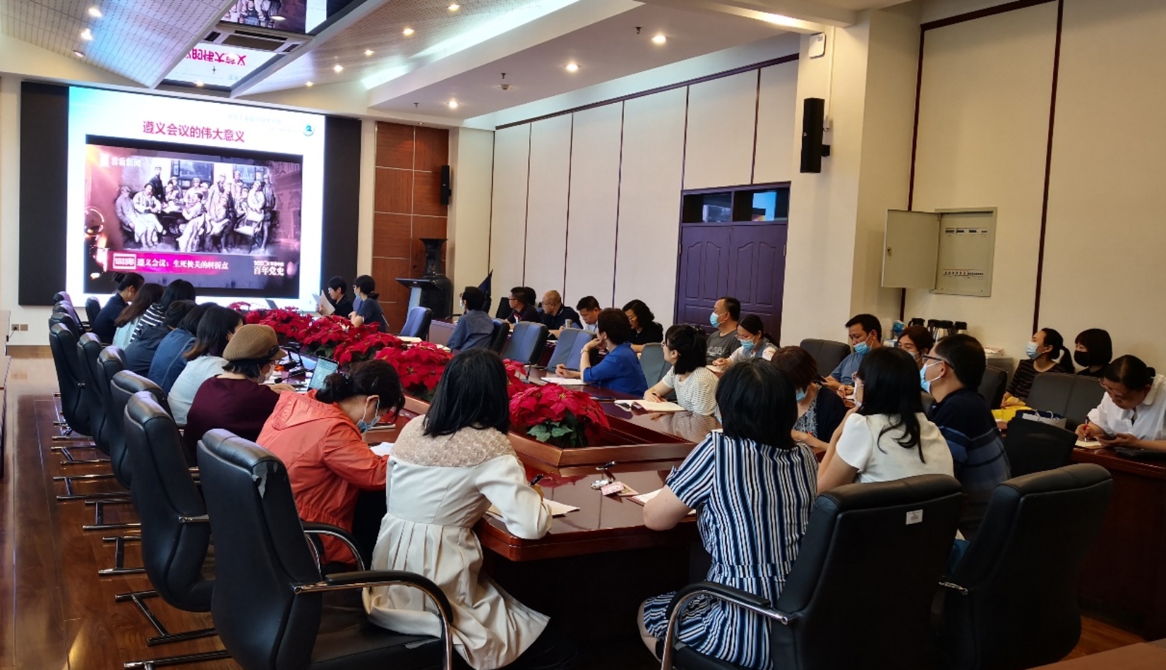 为了深入学习贯彻习近平总书记在党史学习教育动员大会上的重要讲话精神和中共中央印发的《关于在全党开展党史学习教育的通知》精神,根据校党委工作安排,6月9日下午,图书联合党总支和马克思主义学院全体党员及教职工在第四会议室聚集一堂,聆听周燕副校长“遵义会议的伟大意义”的主题党课。
