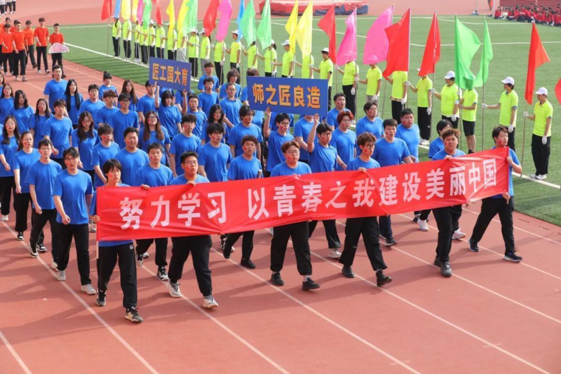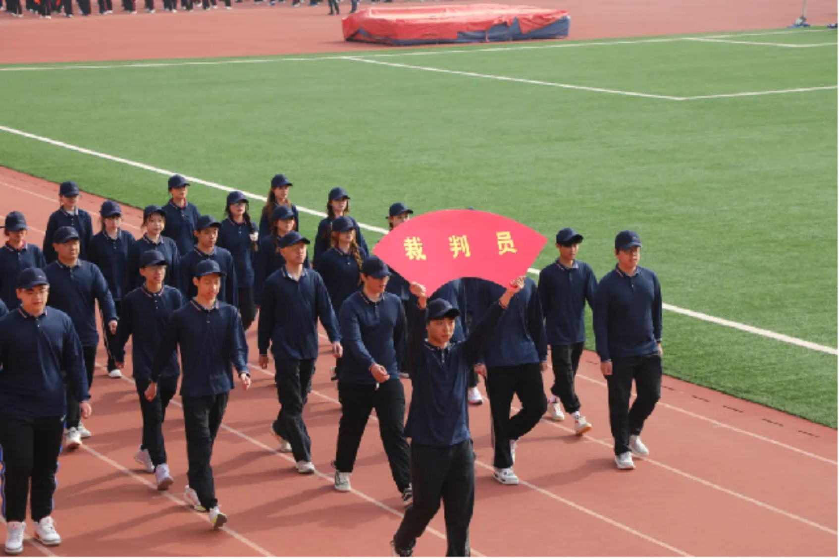 伴着激昂的旋律,护旗方阵、裁判员方阵、各学院方阵迈着整齐的步伐依次入场。他们精神抖擞,意气风发,充分展现了朝气蓬勃的青春活力和昂扬向上的精神风貌。