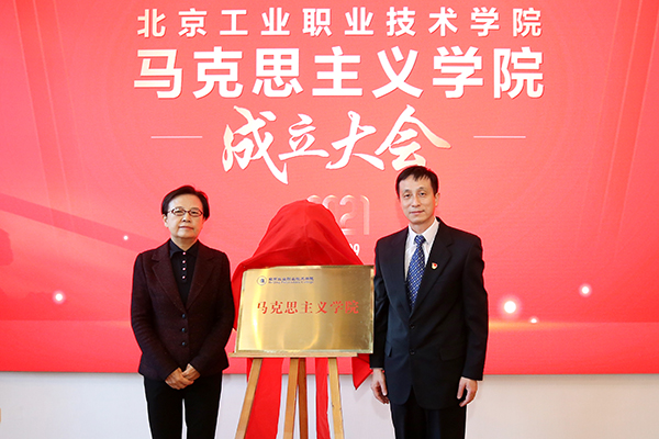 中国职业技术教育学会会长、教育部原副部长鲁昕与校党委书记王伟为我校马克思主义学院揭牌
