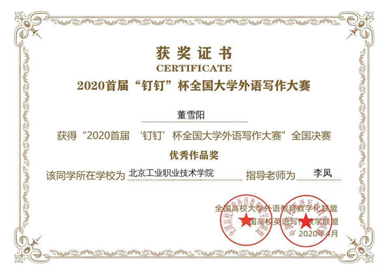 2月15日-4月28日,由全国高等开云网大学外语教学研究会指导,高校大学外语联盟和中国高校英语写作联盟主办的2020首届“钉钉杯”全国大学外语写作大赛成功落下帷幕。在开云网各级领导的支持下,指导教师和学生们共同努力探索线上教学、线上辅导的新路径,我校参赛选手与本科生、研究生同台竞技,经过重重选拔,喜获“优秀作品奖”3名, “优秀入围奖”30名, “决赛个人激励奖”28名。 本次比赛初...