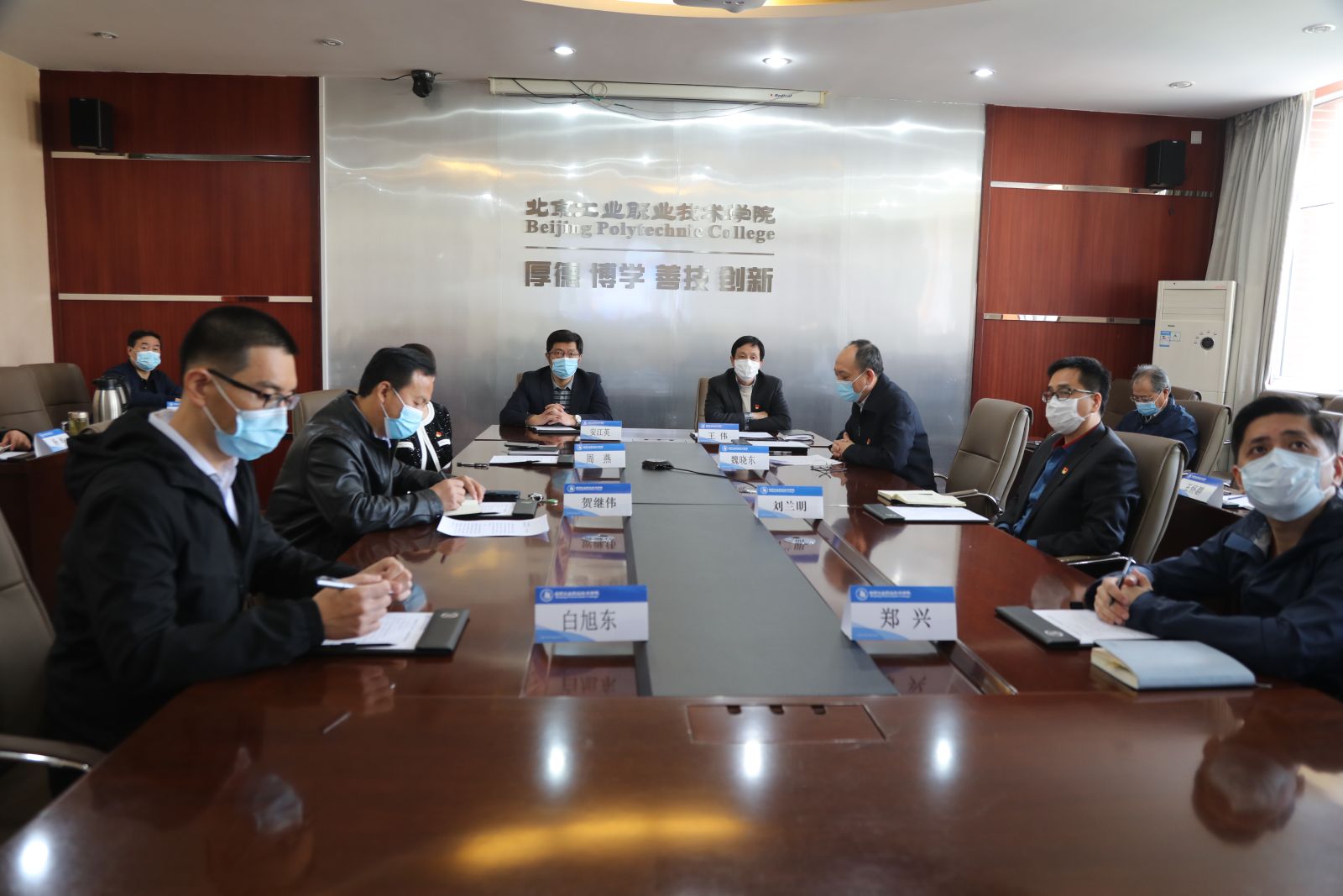 2020年4月16日下午14:00,我校与北京博维航空设施管理有限公司校企合作视频洽谈会在厚德楼会议室召开。企业方姜春阳董事长、杨金怡副总经理、车辆分公司负责人杨志远、车辆分公司副经理李怀剑、樊卫平,培训管理中心负责人董振强及相关人员出席,我校安江英校长、刘兰明副校长、科研处处长任风国、继续教育学院院长张波、机电工程学院院长张春芝、教务处副处长刘文龙、机电工程学院副院长张普庆、汽...